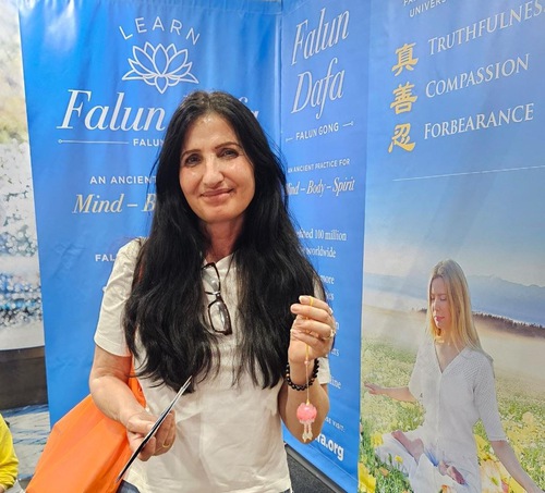 She said the principles of Truthfulness, Compassion, and Forbearance resonated with her. “I think that what you are doing is wonderful. Just keep spreading the word about the beauty of Falun Dafa and the peaceful feeling of these principles in daily life.”