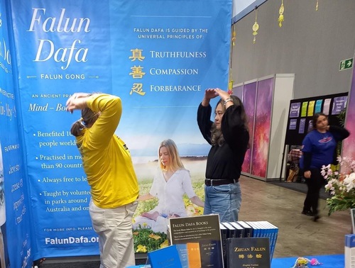 (Minghui.org) The second Mind-Body-Spirit Festival was held at the Melbourne Convention Centre from November 14 to 16, 2025. It is the biggest health expo and due to its popularity, it's held twice a year, in June and November. Falun Dafa practitioners participated in the festival again and introduced the spiritual practice to visitors.