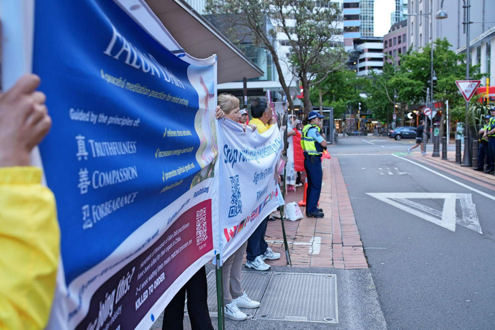 Practitioners called on the New Zealand government to uphold human rights and to put forward three points when meeting with the CCP delegation: raising the issue of religious and spiritual persecution in China, expressing New Zealand’s commitment to freedom of belief and human dignity, and urging the Chinese authorities to end the persecution of Falun Gong practitioners.