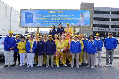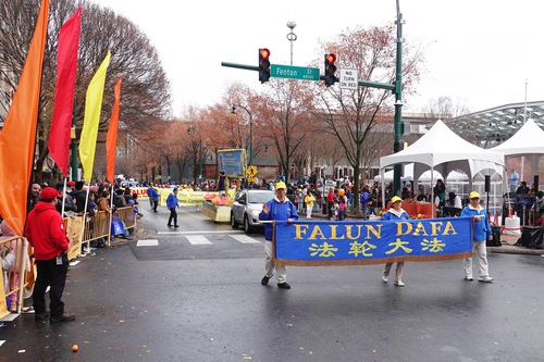 Falun Dafa practitioners participating in the Thanksgiving Parade.
