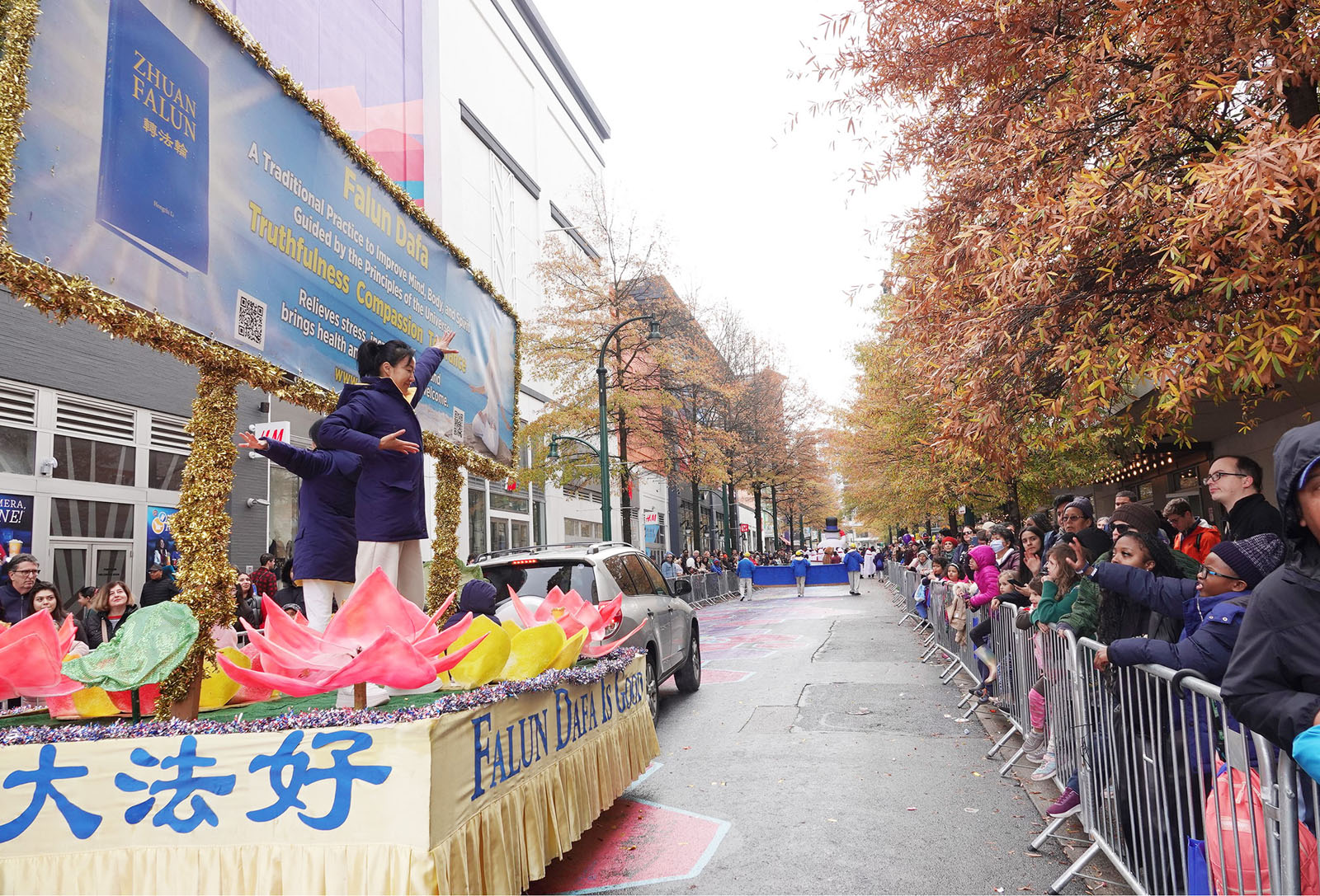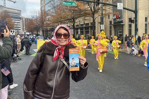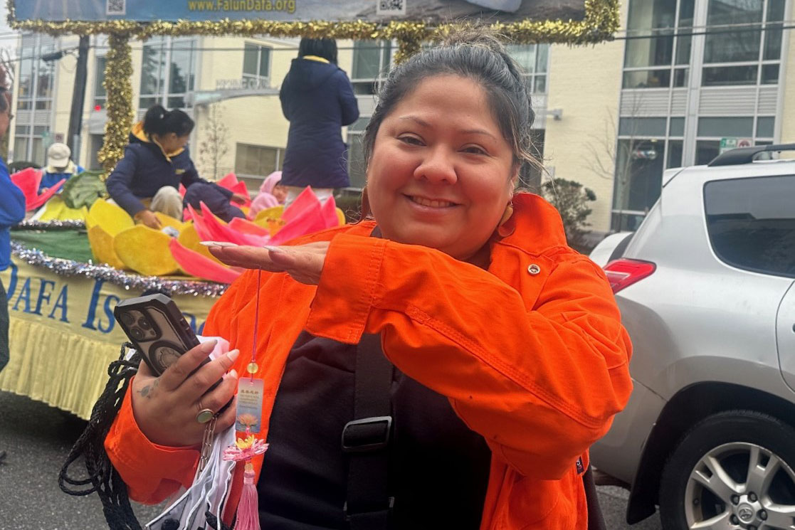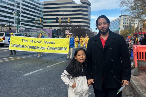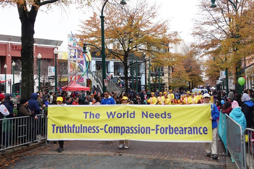 She said she was happy to see Falun Dafa practitioners’ entry in the parade. “I hope they can remind everyone that during this holiday season, everyone needs more of Truthfulness-Compassion-Forbearance. Whether it is during shopping or time spent with family and friends, they should keep these principles in mind.