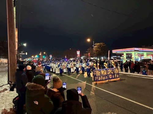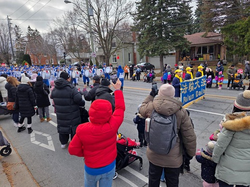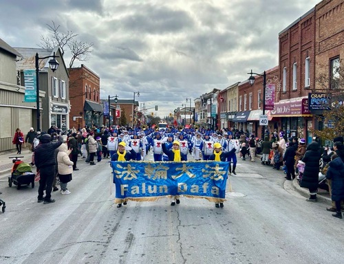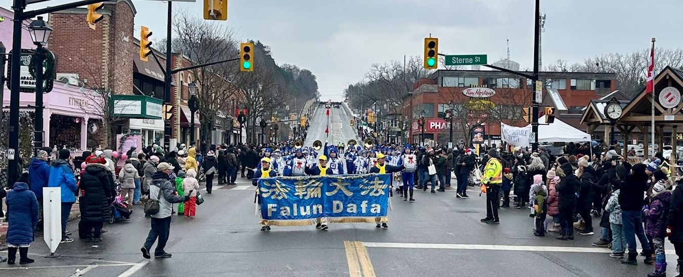 (Minghui.org) The Tian Guo Marching Band participated in Santa Claus Parades in five cities, including Pickering, Ajax, Markham, Bolton, and Stouffville, on November 22 through December 6, 2025. Many people learned about Falun Dafa (Falun Gong) at the events.