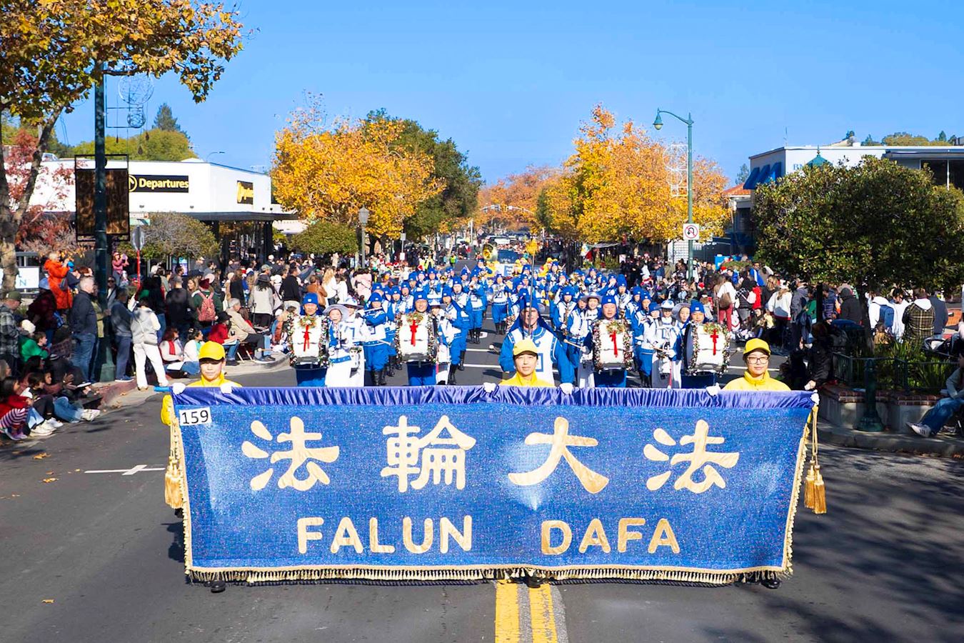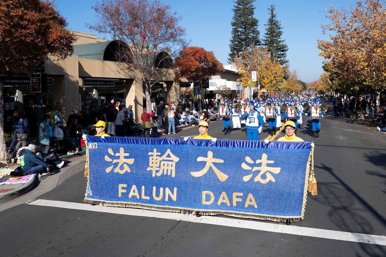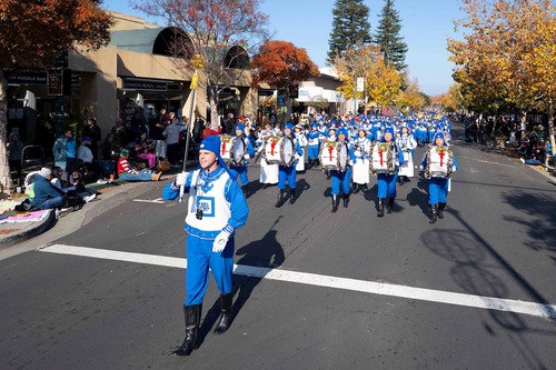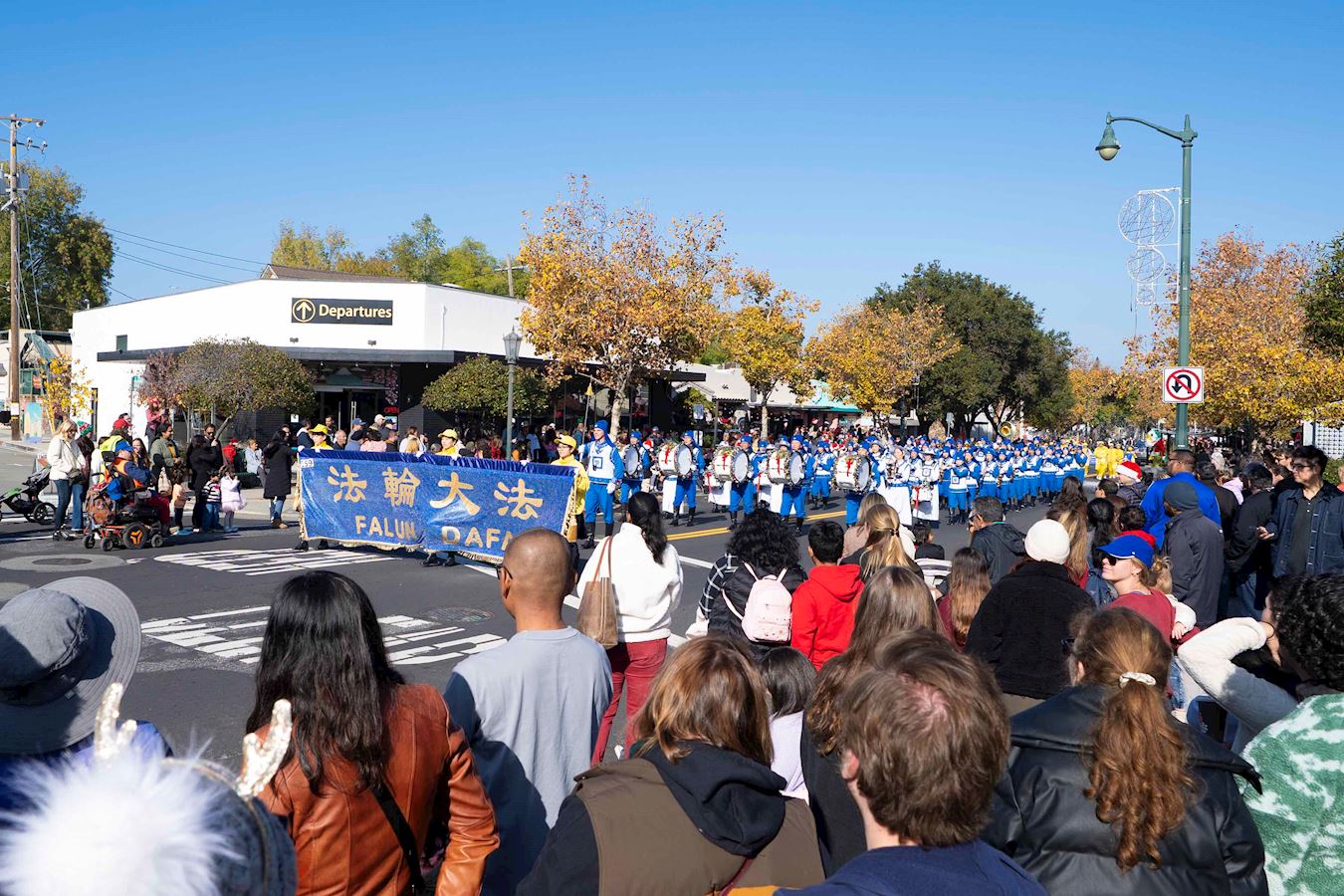(Minghui.org) The 69th Los Gatos Children’s Christmas/Holidays Parade was held on December 6, 2025. Falun Dafa (Falun Gong) practitioners were invited to participate and were welcomed by spectators and town council members.