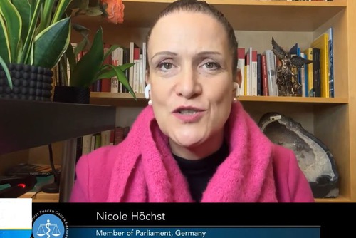 Nicole Höchst, a Member of Parliament of Germany, said, “We urgently need to debate an issue that touches the very foundations of our civilization: the inviolable dignity of the human person of every human being, whether rich or poor, living in safety or under an authoritarian regime, whether Christian, Falun Gong practitioner, victim of war, or political prisoner.