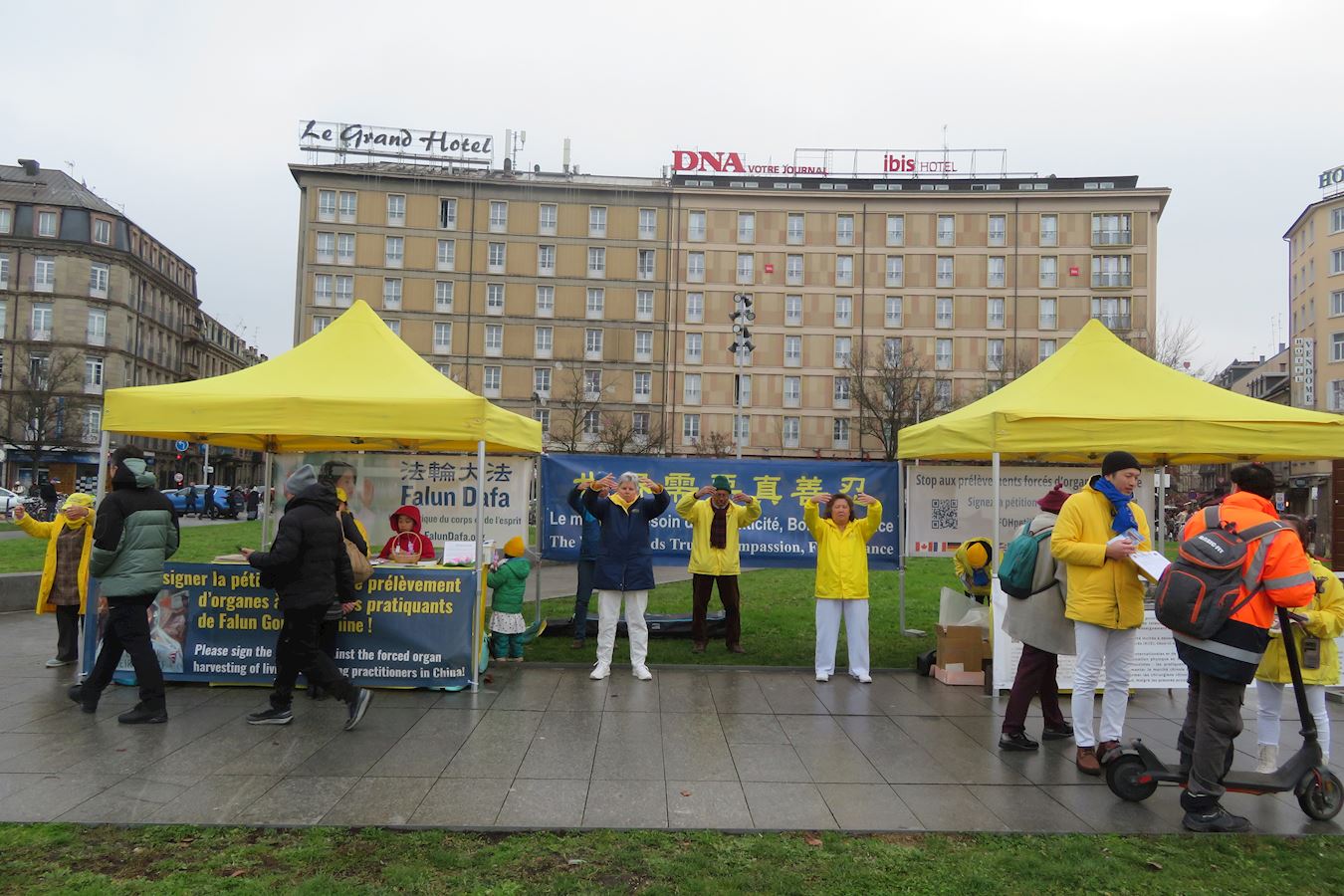 (Minghui.org) Falun Dafa practitioners held activities in Strasbourg, a city in eastern France, and Rennes, a city in northwest France, from December 5 to 7, 2025.