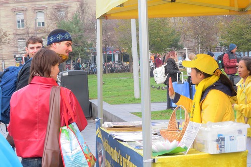 A student asked practitioners for more information about the persecution and took flyers to share with others at school. She thanked practitioners for providing this little-known but valuable information.