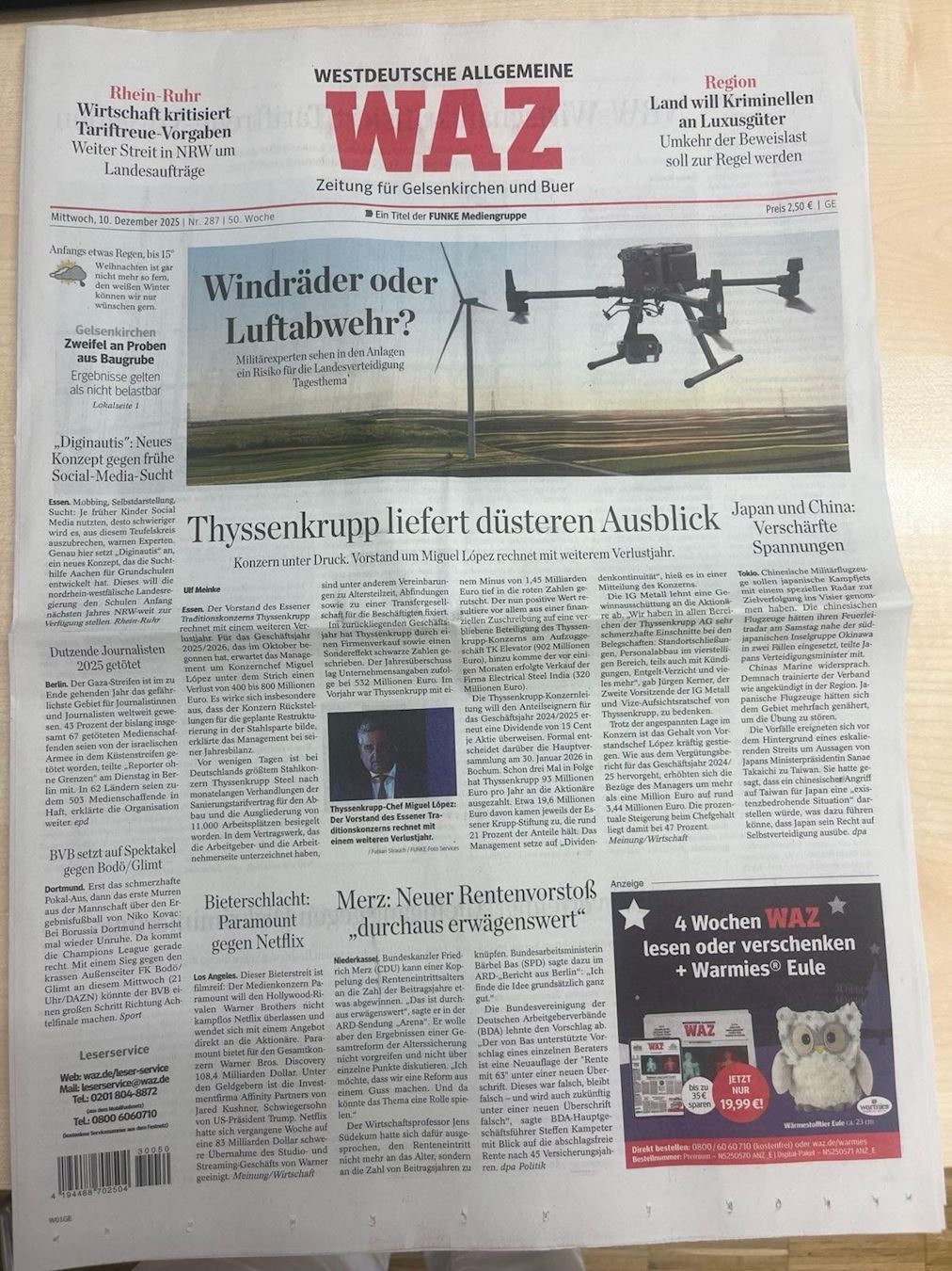 (Minghui.org) The local edition of the Westdeutsche Allgemeine Zeitung (WAZ) newspaper in Gelsenkirchen carried a report titled “We are turning a blind eye to organ harvesting” on December 10, 2025, Human Rights Day. It calls on Germany to pay attention to the Chinese Communist Party’s (CCP) state-sanctioned forced organ harvesting.