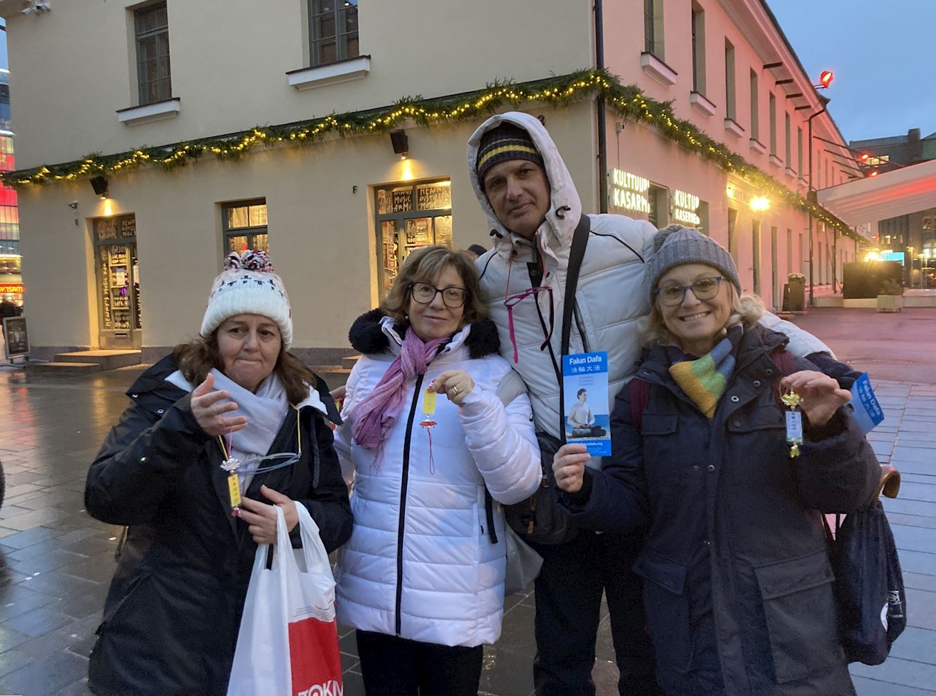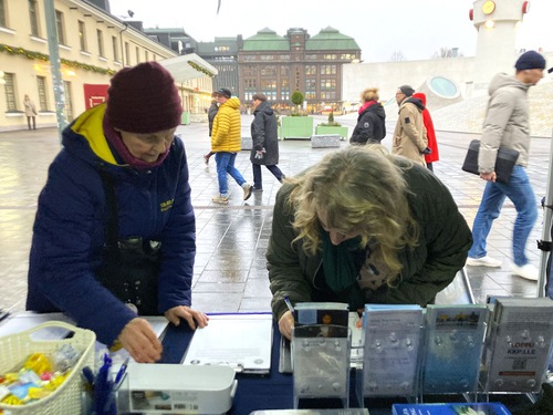 Pirkko, a Finnish artist, said she was moved by the atmosphere at the candlelight vigil. She said, “This [persecution] is horrible. I must sign the petition to support you. Everyone should have freedom.” Before leaving, she offered her sincere best wishes: “May all good things be with you. Merry Christmas!”