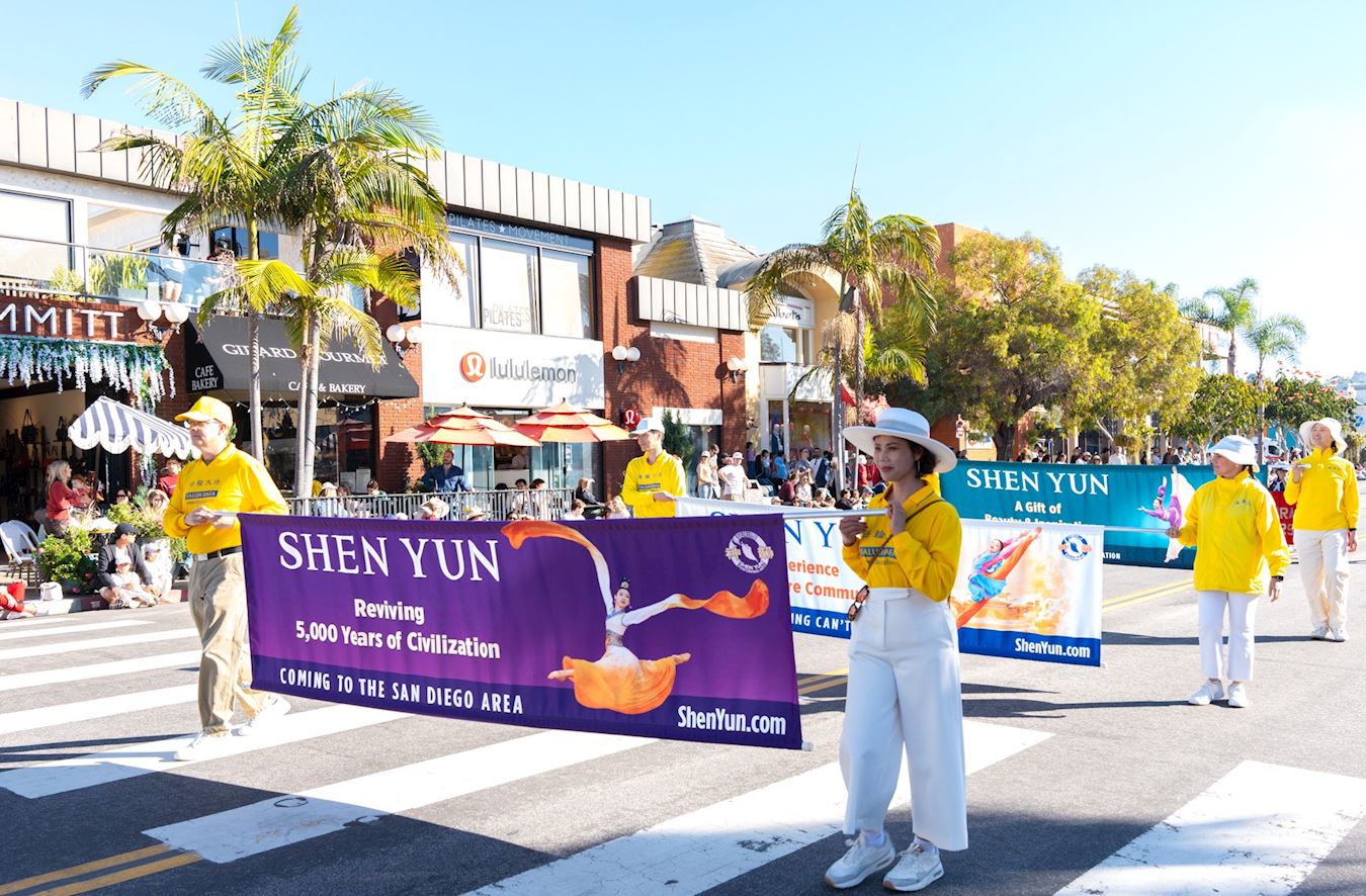 (Minghui.org) Falun Dafa practitioners participated in the La Jolla Christmas Parade on December 7, 2025, introducing Falun Dafa and the upcoming Shen Yun Performing Arts’ performances in San Diego.