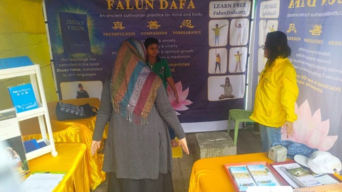 At their booth, the practitioners demonstrated the exercises to a growing number of curious onlookers. Many visitors eagerly joined in to learn the practice, spurred by the welcoming and informative atmosphere created by the volunteers. One visitor, named Imran, expressed his admiration, saying, “You people are doing a wonderful job using your time.” He was particularly impressed by the selfless way the practitioners explained both the benefits of the cultivation practice and the persecution faced by Falun Dafa practitioners in China.