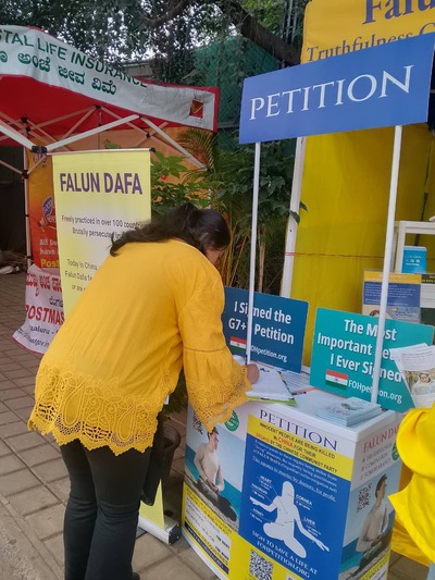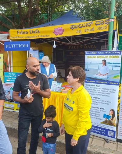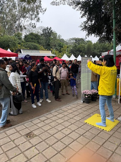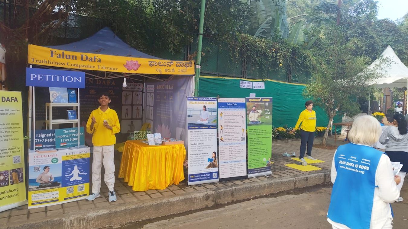 (Minghui.org) The Karnataka Department of Horticulture hosted an 11-day flower show at Cubbon Park in Bangalore on November 27 through December 7, 2025. It was modeled after the famous annual Lalbagh Flower Show. Falun Dafa practitioners from the area were invited as part of the community, to share their meditative practice with the attendees.