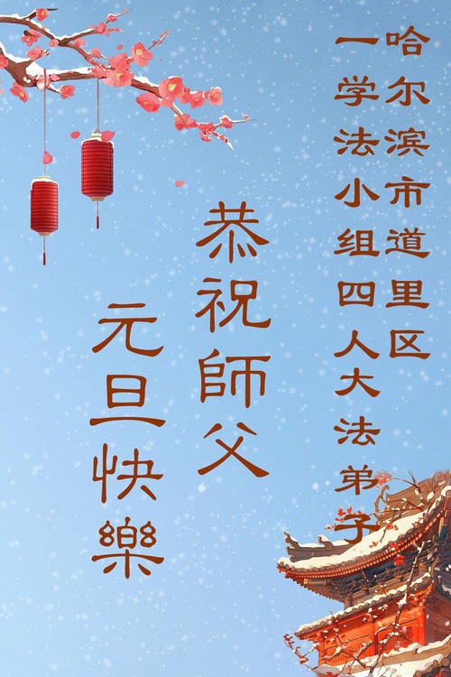 Falun Dafa Practitioners from Harbin City Respectfully Wish Master Li Hongzhi a Happy New Year (106 Greetings)