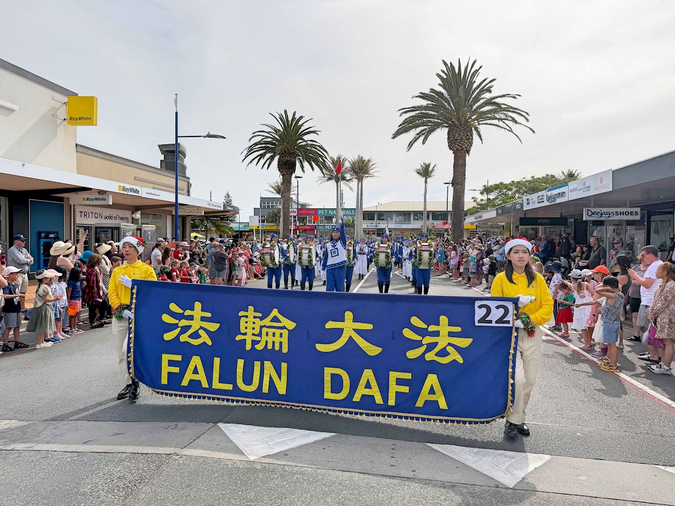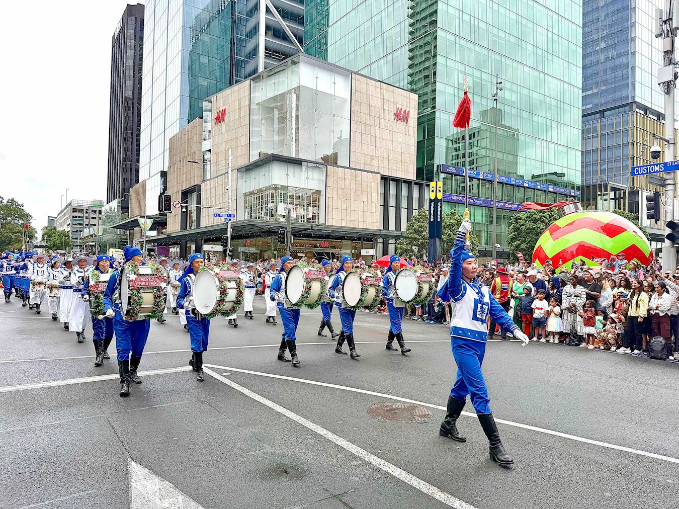 (Minghui.org) Falun Dafa practitioners in New Zealand participated in five Christmas parades in four cities on North Island and South Island on November 29 and 30, 2025. The parades were held in Auckland, Orewa of Auckland, Rotorua, Dunedin, and Invercargill.