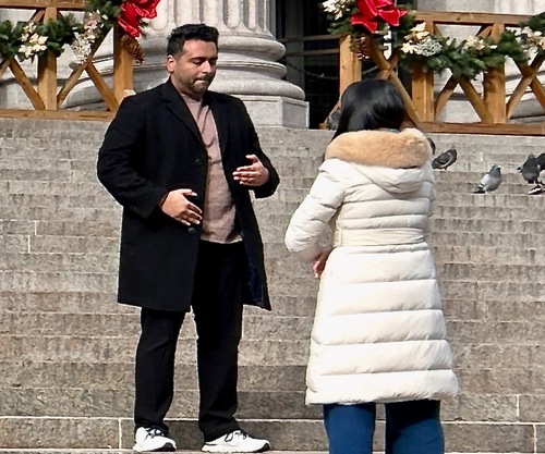 Practitioner Ms. He who works in New York said, “A man came to learn the exercises. Some people imitated our hand gestures. Some media influencers did live broadcasts. People across the street also took photos of us as we did the exercises.”