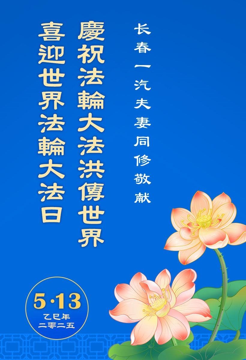 (Minghui.org) May 13, 2025, marks the 26th World Falun Dafa Day and the 33rd anniversary of the public introduction of Falun Dafa. The day is also the birthday of Master Li, the founder of Falun Dafa. Practitioners around the world are sending their heartfelt greetings to celebrate this grand occasion and honor revered Master on this special day.
