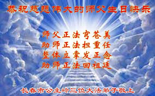 (Minghui.org) Changchun City, Jilin Province is Master Li Hongzhi’s hometown and where he began to teach Falun Dafa. As World Falun Dafa Day approaches, practitioners in Changchun send their greetings to wish revered Master Li a happy birthday and to celebrate the 33rd anniversary of Falun Dafa’s public introduction. In this report, we present a selection of the 18 greetings sent from Falun Dafa practitioners in Master’s hometown: