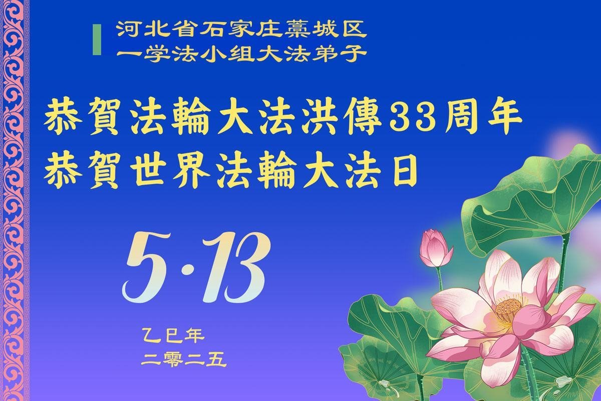 Falun Dafa Practitioners from Shijiazhuang City Wish Revered Master a Happy Birthday and Celebrate World Falun Dafa Day!