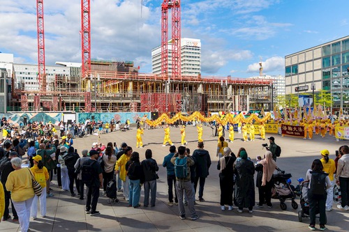Performers gathered at Alexanderplatz in Berlin to celebrate World Falun Dafa Day.