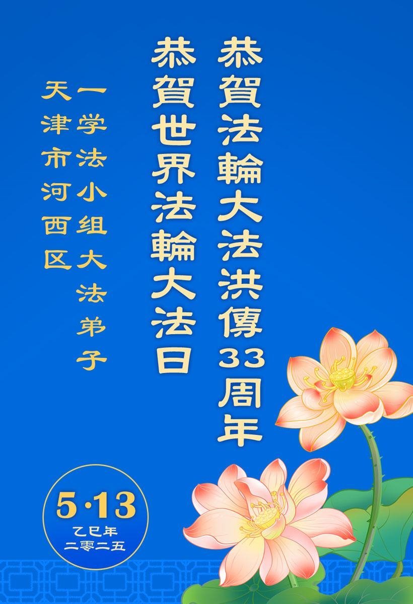 Falun Dafa Practitioners from Tianjin Wish Revered Master a Happy Birthday and Celebrate World Falun Dafa Day!