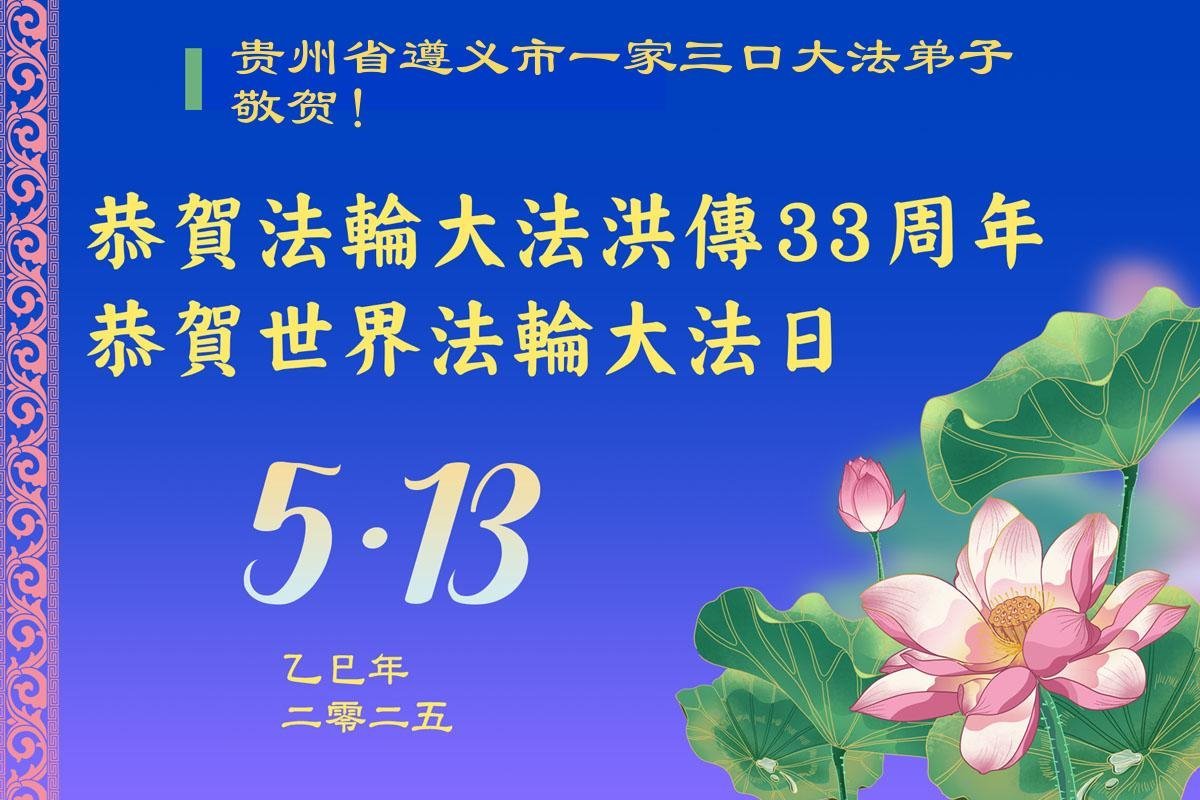 Falun Dafa Practitioners in Guizhou Province Wish Revered Master a Happy Birthday and Celebrate World Falun Dafa Day!