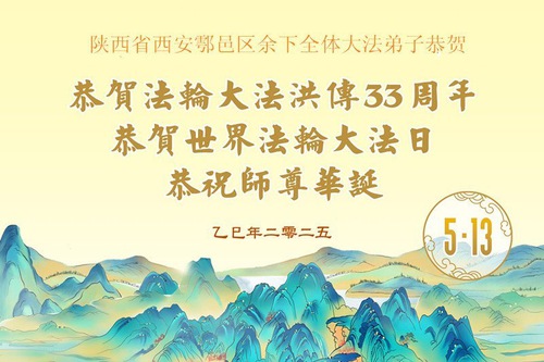 (Minghui.org) May 13, 2025, marks the 26th World Falun Dafa Day and the 33rd anniversary of the public introduction of Falun Dafa. It is also the birthday of Master Li Hongzhi, the founder of Falun Dafa. Practitioners around the world are sending their heartfelt greetings to celebrate this grand occasion and honor revered Master on this special day.
