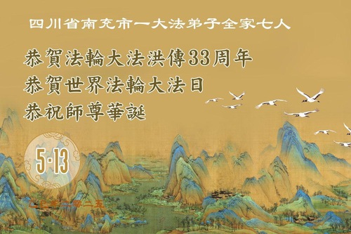 (Minghui.org) In this report, we present a selection of the 19 greetings sent from Falun Dafa practitioners in Sichuan Province, China, to celebrate the special occasion of May 13, 2025: the 26th World Falun Dafa Day and the birthday of Master Li Hongzhi.