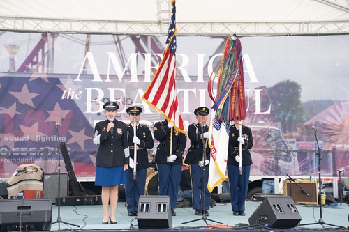 West Point Band’s lead singer, Sergeant Major MaryKay Messenger, sang the national anthem at the third annual America the Beautiful Festival.