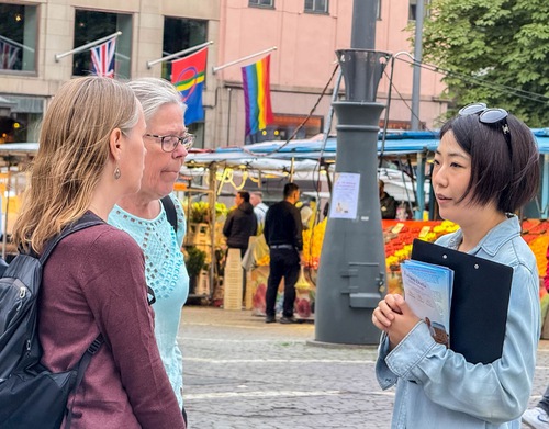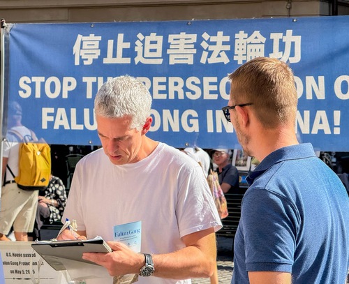 In early September 2025, Falun Dafa practitioners held a series of events in front of the Swedish Nobel Museum to gather signatures on a petition to end the persecution.