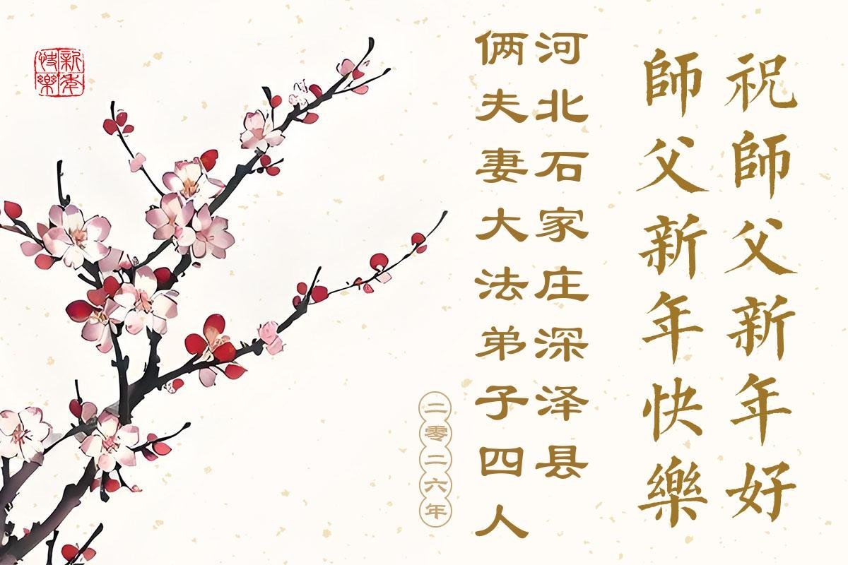 Falun Dafa Practitioners in Shijiazhuang City Respectfully Wish Master Li Hongzhi a Happy New Year (118 Greetings)