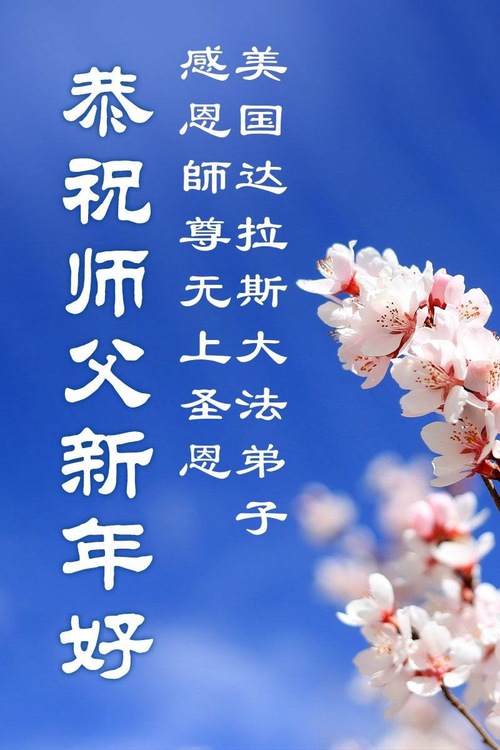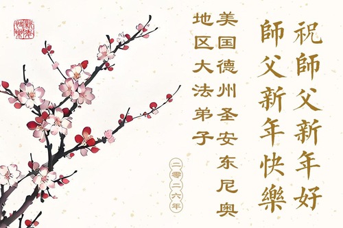 A Family of Three Practitioners from Jilin City, Jilin Province, China, Who Now Live in Austin, Texas, Respectfully Wish Master a Happy New Year!