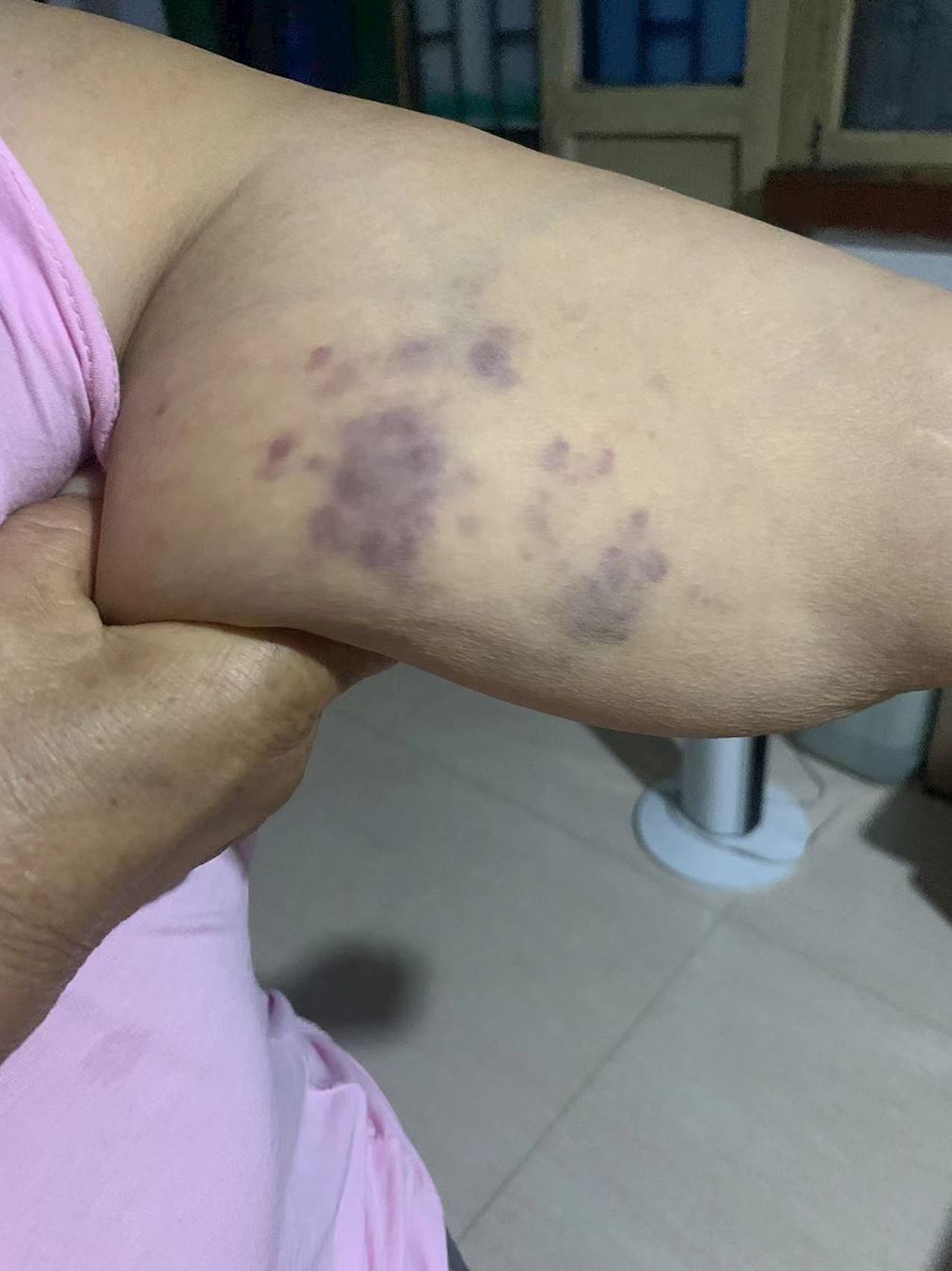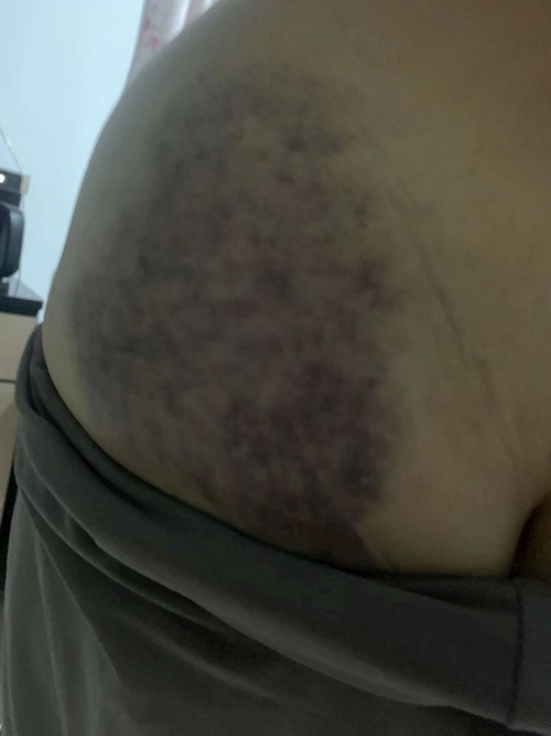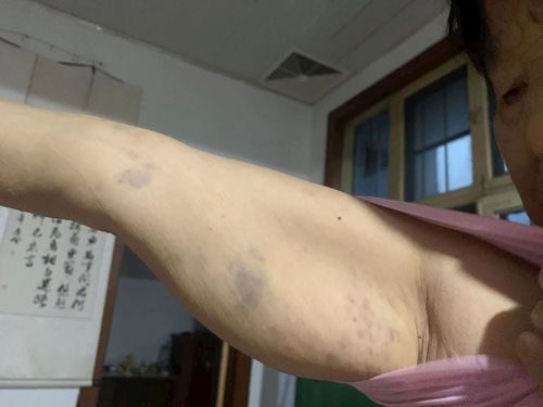 Ms. Zhang’s arms were bruised due to the police violence during her arrest.