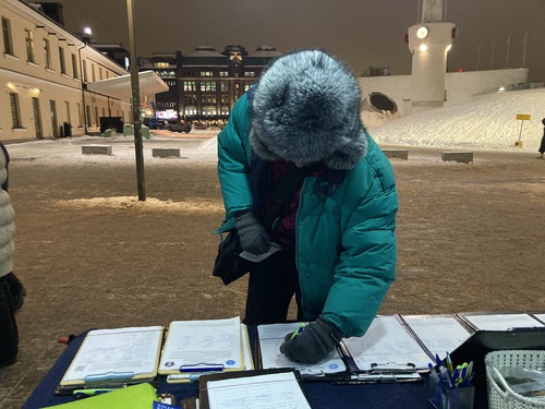 This January 27, practitioners in Finland braved minus 10-degree weather to hold a candlelight vigil to tell people the facts about the 27-year-long persecution of Falun Gong by the Chinese Communist Party (CCP). They informed passersby that this campaign has led to many practitioners being brutally tortured, injured, disabled, and even losing their lives. They let people know about the regime’s ongoing crime of organ harvesting, a crime that has involved many levels of society.