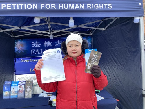 She said, “My mother-in-law died as a result of the persecution. This made me very sad. She was not as fortunate as I was to come here. This persecution has gone on for 27 years. I hope it ends soon. I hope more people know the truth about the persecution, especially about the Chinese regime taking practitioners’ organs for profit. I believe there are many kind people in this world, so I hope everyone can support us and help stop the persecution as soon as possible.