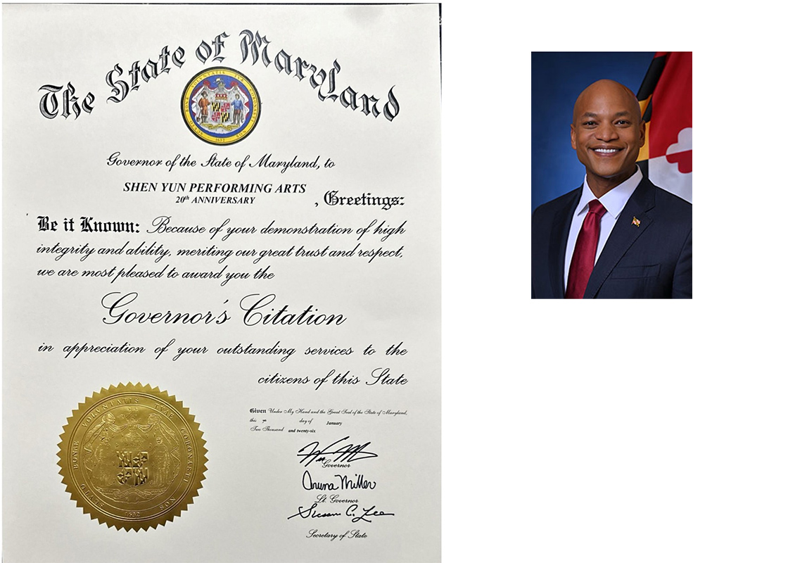 (Minghui.org) Governor Wes Moore of the State of Maryland issued a citation in January 2026, to mark the 20th anniversary of Shen Yun Performing Arts.