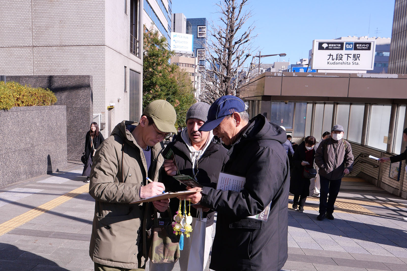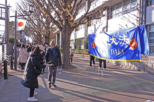 (Minghui.org) Japanese Falun Gong practitioners met in Kudanshita in Tokyo on New Year’s Day 2026, to talk to people who were attending Hatsumōde (the Japanese New Year prayer ritual) about the persecution of Falun Gong in China, and to call on all sectors of society to help stop the persecution.