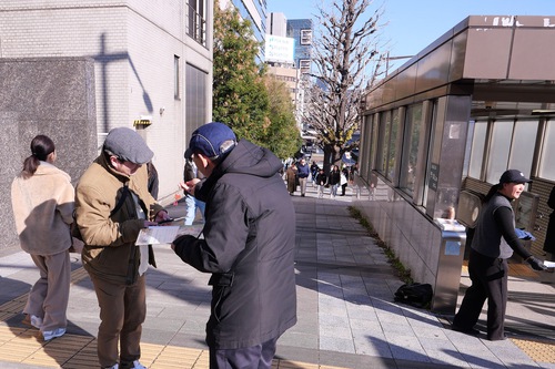Practitioners distributed fliers and clarified the truth to people in Kudanshita.