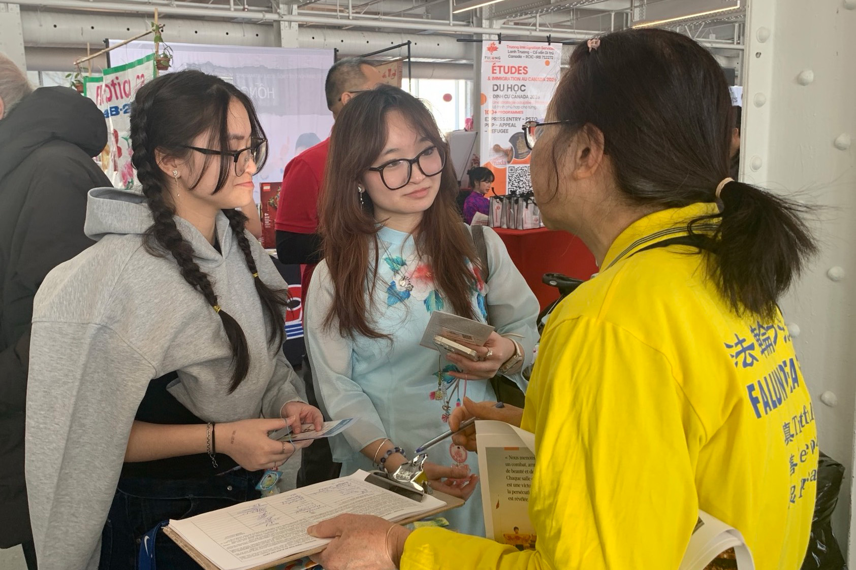 Phuong and her husband who helped organized the event came to the Falun Dafa booth, and after hearing a practitioner’s introduction, Phuong said she’d like to learn how to practice.