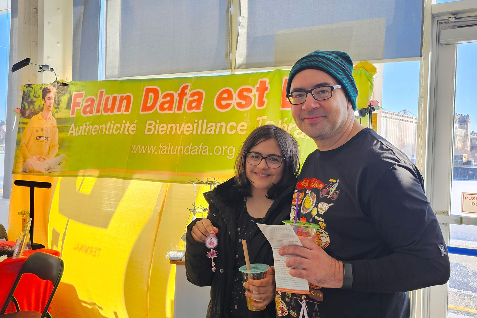 (Minghui.org) Falun Dafa practitioners were invited to participate in the Lunar New Year Celebration held by the Vietnamese Canadian community at the Old Port in Montréal on February 8, 2026. They demonstrated the exercises and introduced Falun Dafa’s guiding principles of Truthfulness-Compassion-Forbearance.