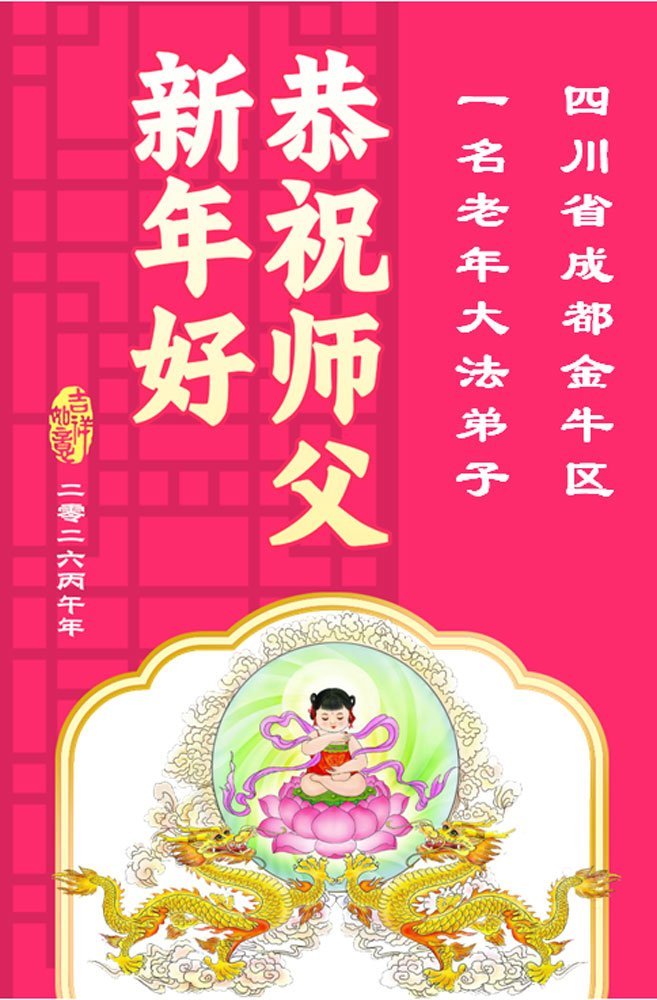(Minghui.org) In this report, we present a selection of the 104 greetings sent from Falun Dafa practitioners in Chengdu City, Sichuan Province, China: