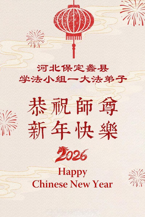 (Minghui.org) In celebration of the 2026 Chinese New Year, Falun Dafa practitioners are sending their sincerest wishes to Master Li Hongzhi, the founder of the practice. They thank him for introducing Dafa to the world and vow to better cultivate themselves in the new year.