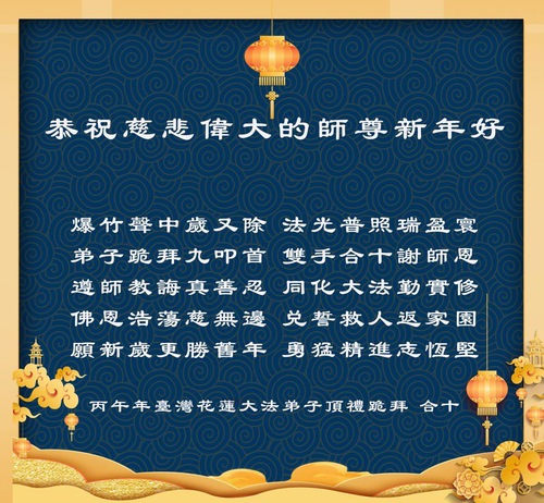 (Minghui.org) Falun Dafa practitioners in Taiwan, Hong Kong and Macau, wish Master Li a happy Chinese New Year:
