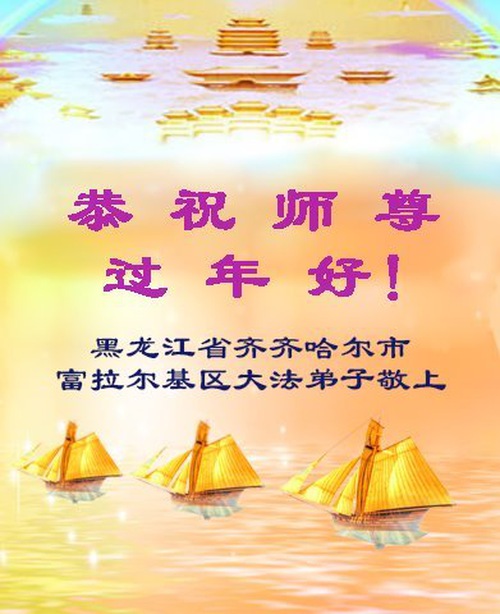 The greetings come from practitioners in these cities:Daqing, Qiqihar, Jiamusi, Hegang, Jixi, Heihe, Yichun, Shuangyashan, Mudanjiang, Harbin and other areas.