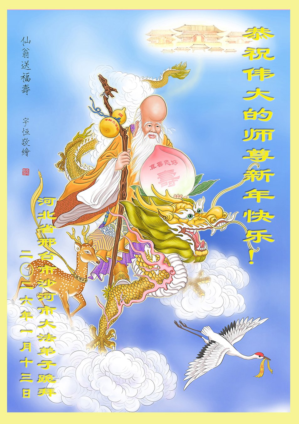 The greetings come from practitioners in these cities:Baoding, Hengshui, Zhangjiakou, Cangzhou, Xingtai, Handan, Tangshan, Langfang, Qinhuangdao and other areas.