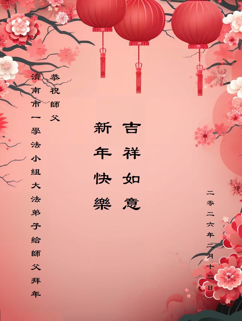 Falun Dafa Practitioners in Shandong Province Wish Revered Master a Happy Chinese New Year!
