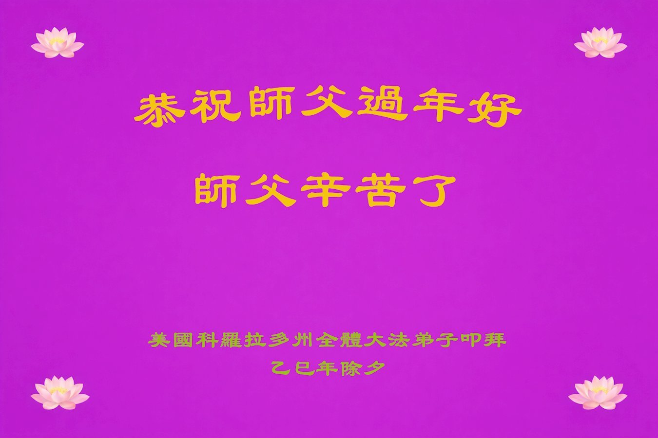 New Year Greetings to Master from practitioners at a truth-clarification site in San Diego
