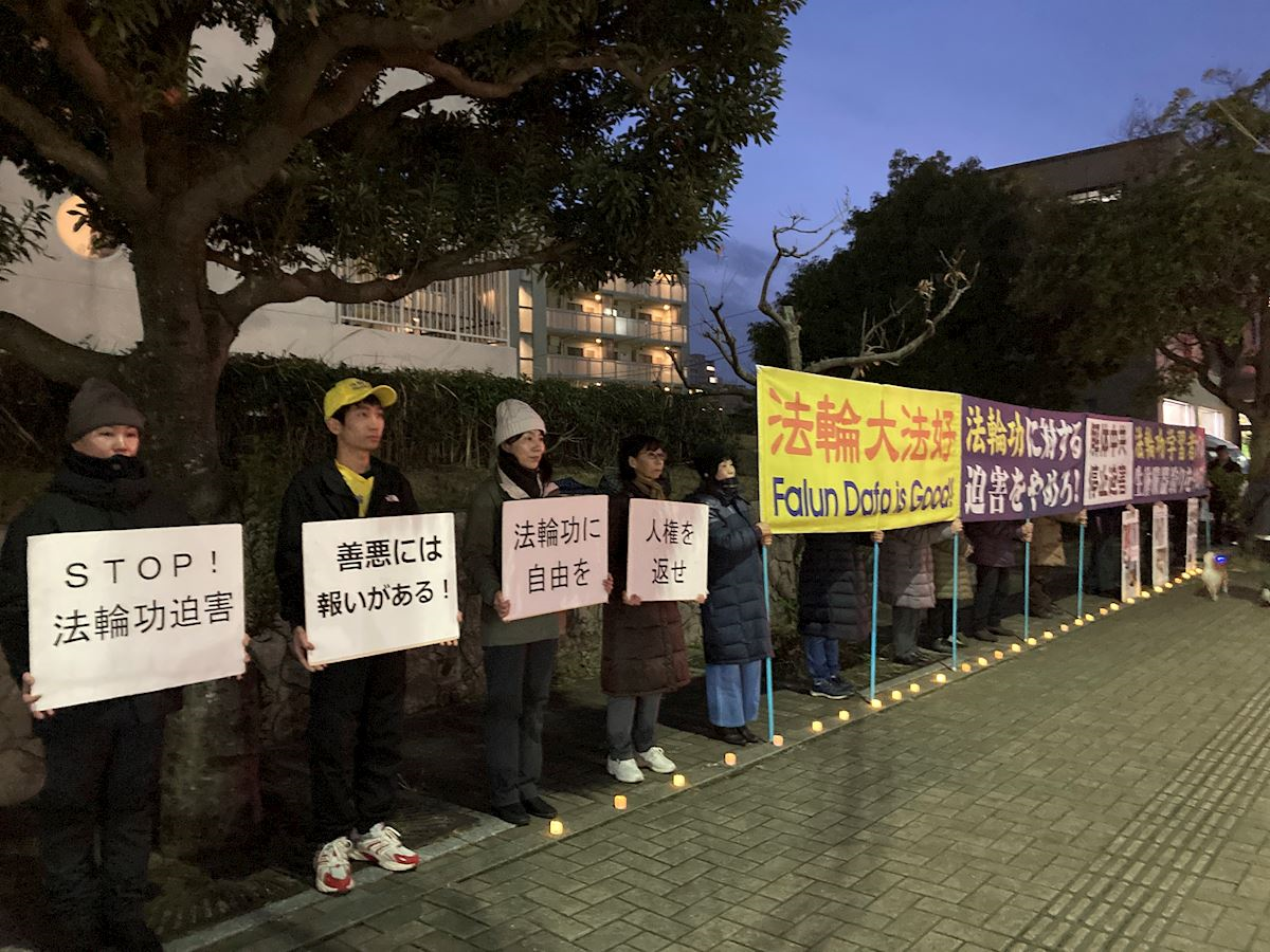 On the Lunar New Year’s Eve, February 16, practitioners in Kumamoto held a similar protest in front of the Chinese Consulate in Fukuoka. They called on the international community to pay attention to the 27-year persecution and to take action to help end it.