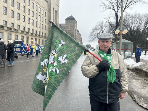 Originally from central Ireland, John Walmsley said several generations of his family live in Ontario, Canada. He said the tradition of the St. Patrick’s parade is great and the Tian Guo Marching Band’s performance was fantastic. He believes Falun Dafa’s principles of Truthfulness-Compassion-Forbearance are good for society.