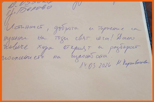 (Minghui.org) The Art of Zhen-Shan-Ren (Truthfulness-Compassion-Forearance) was held in Ihtiman and Belovo, near the capital city of Sofia, for one month and opened on February 20, 2026. The exhibition was held at the St. Cyril and St. Methodius Community Center in Belovo and the Historic Museum in Ihtiman.