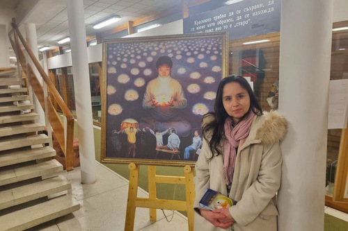 While Kalina was handing out flyers for the exhibition on opening day, she happened to meet Elza Baldzhiyska, who was visiting her hometown. “The moment Ms. Baldzhiyska took the flyer and started to enter the museum, she exclaimed, ‘But this is Falun Dafa!’” said Kalina.