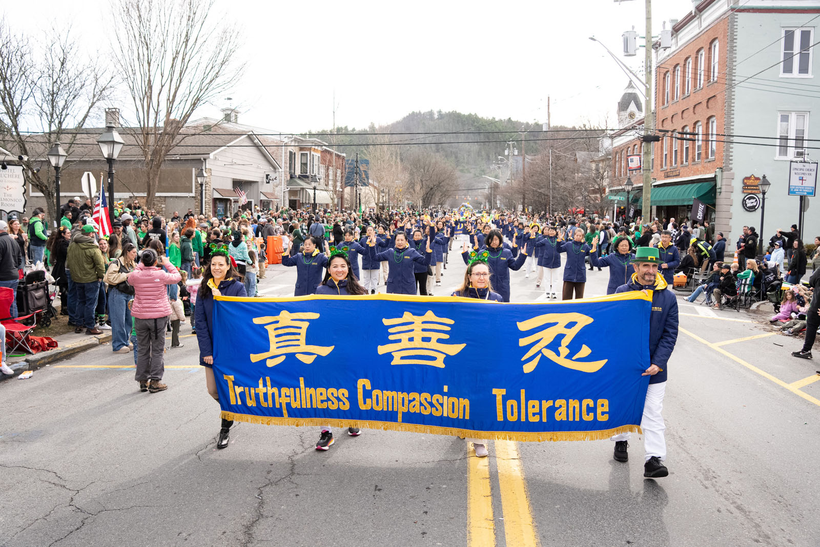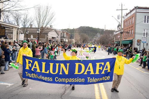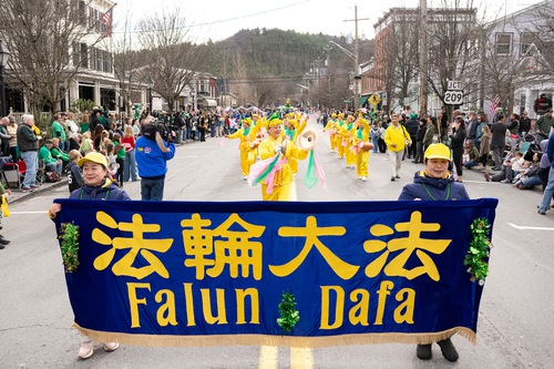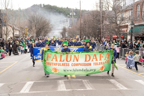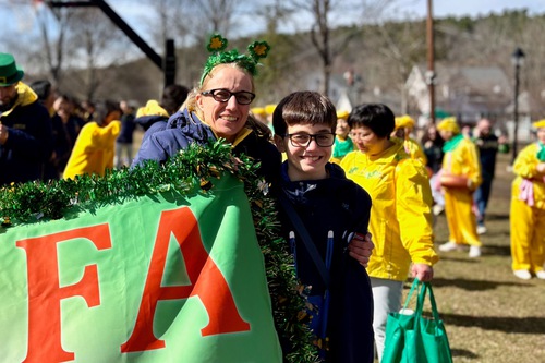 Falun Dafa practitioners participate in the Milford St. Patrick’s Day parade.